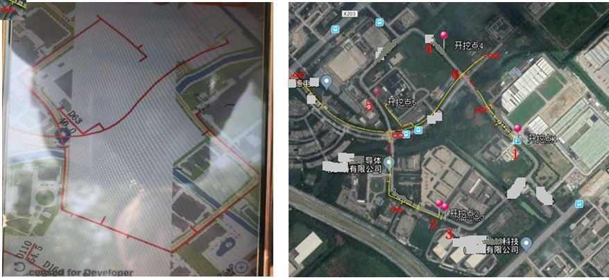 以上這兩個工程案例,都是勘察單位在現(xiàn)場需要打樁、打鉆等施工活動,存在與現(xiàn)場燃氣管道交叉的情況,必須要保證與燃氣管道有足夠的安全距離,一般采用挖機開挖見管的方式確定,但是如果不知道管道的準確位置,造成現(xiàn)場大量的開挖面積也無法找到管道或者是停工的損失,例如第二個案例。