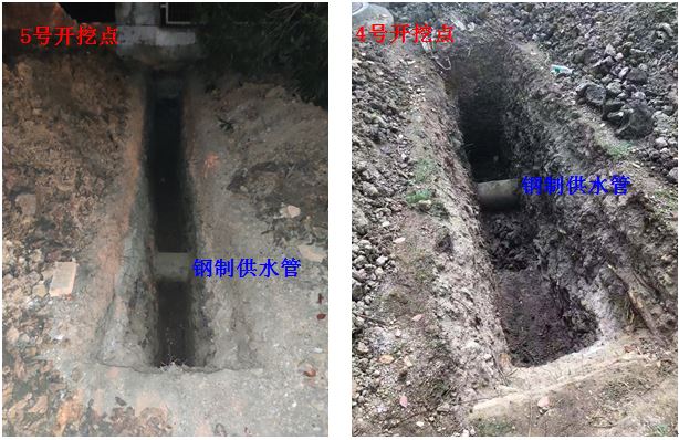 當(dāng)聲源信號比較復(fù)雜無法弄清楚管道的連接關(guān)系時可采用釬探或者開挖方式弄清管道連接關(guān)系;