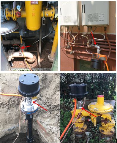 庭院的低壓管道信號接入點可以是立管、法蘭、調(diào)壓設(shè)備的放散口(孔),由于庭院內(nèi)每棟樓層均要接氣入戶,因此都會有入戶立管連接,連接點相距很短,可以依據(jù)信號強弱來換接口,沒有必要每個立管都要接,浪費時間,當(dāng)信號弱到無法判斷時,再換到附近的接入點,一般小區(qū)內(nèi)信號單向傳播200米左右。