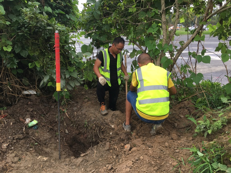 對于復雜的管線,特別是多種管線交錯,儀器探測信號弱、干擾信號強的地方,在土質(zhì)界面環(huán)境中,可以采用打孔棒直接打入地下尋找管道,避免地面大面積開挖,造成環(huán)境破壞。